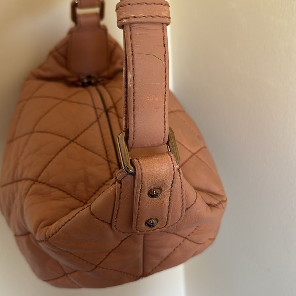 Auth CHANEL bag in a pretty salmon pink color. Quilted leather in good condition. Overall signs of wear without major flaws or stains. Small cracking on strap seen I last photo. No odor. Pet and smoke free environment.