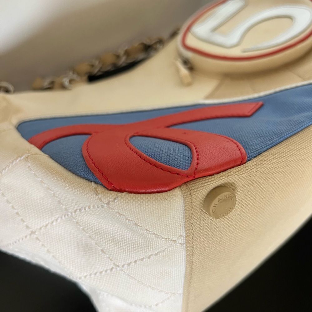 Adorable sporty Chanel!!! Good to very good condition. The biggest call out is some staining inside. There is no stickiness or odor. I have not tried cleaning it yet. I recommend using a felt insert anyway. I took pics of all the flaws I could find. Hardware with minimal scratches. Overall this bag is darn cute! Zippers work well. Comes with original authenticity card as shown.