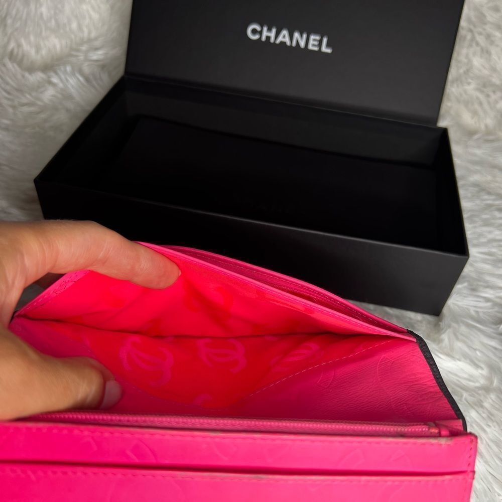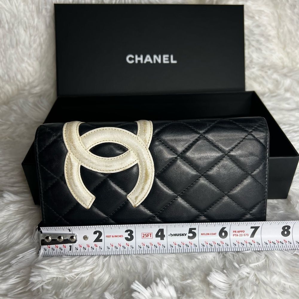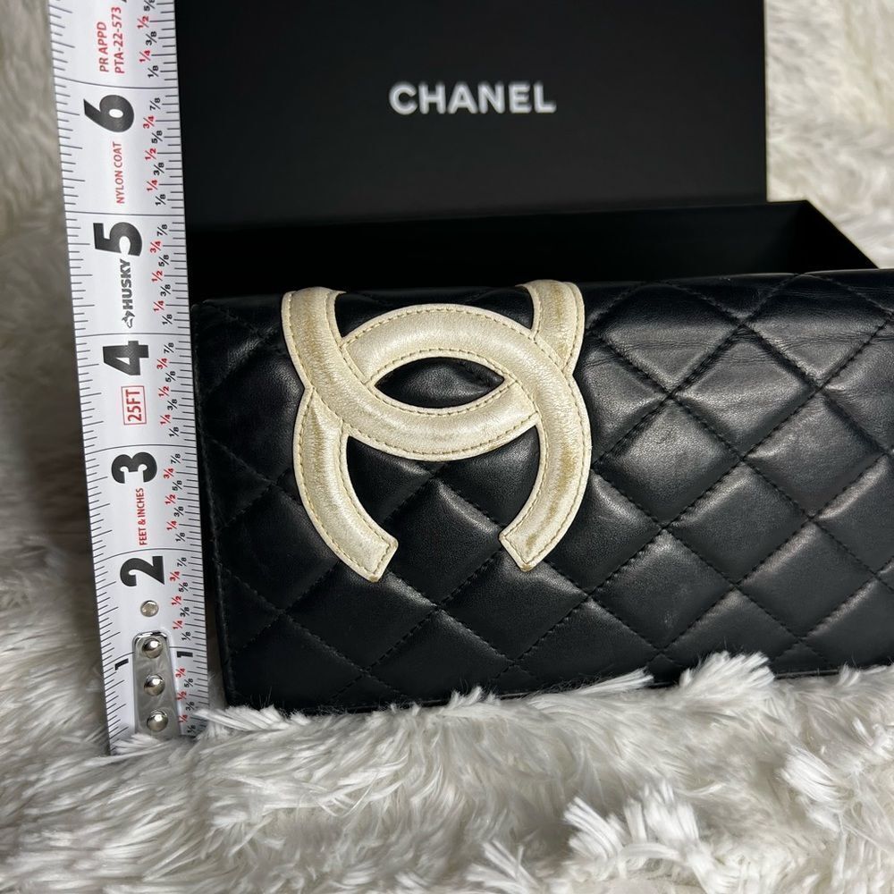 AUTH CHANEL WALLET- black lamb skin. Very good condition with minor signs of wear such as some rubbing on the corners. Some rubbing on the white logo as shown in pictures. Darkening in coin pouch from coins. No odors, rips, tears or stains. Smoke and pet free environment.