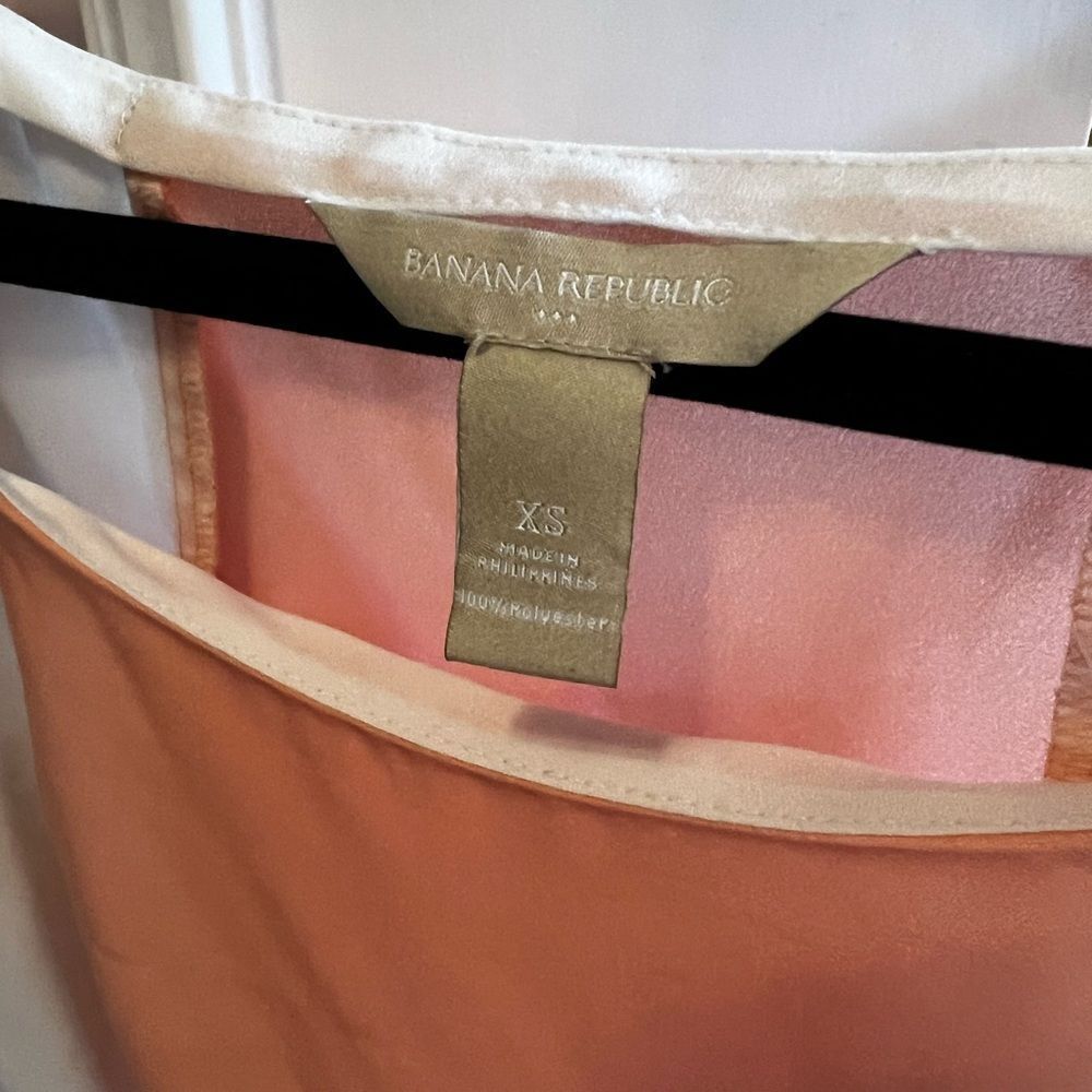 Perfect for business or casual. Beautiful blouse from Banana Republic. Only worn a couple times. Very pretty orange, salmon, color. No stains, ribs, or flaws. Pet and smoke free environment.