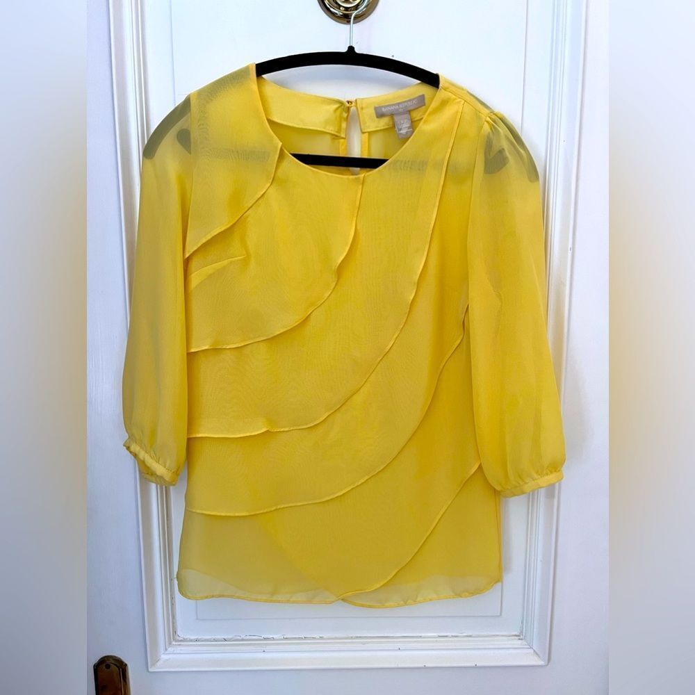 Only wore once! Like new. I took a picture of a small mark on the left sleeve, but I think it will just wash off. No other flaws. Pet and smoke free home.