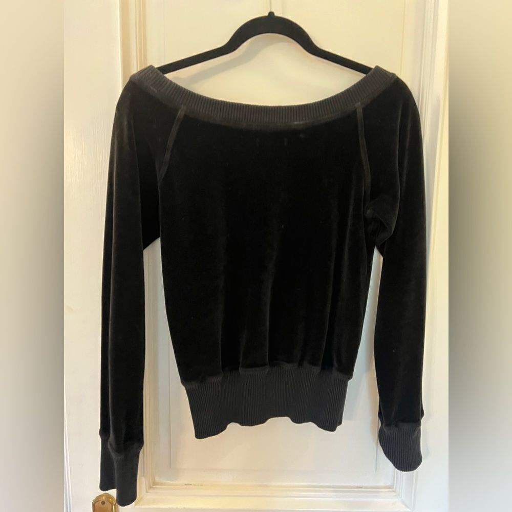 Beautiful, black velvet off shoulder or boat neck sweater. EUC. No flaws or stains. Pet and smoke free home.