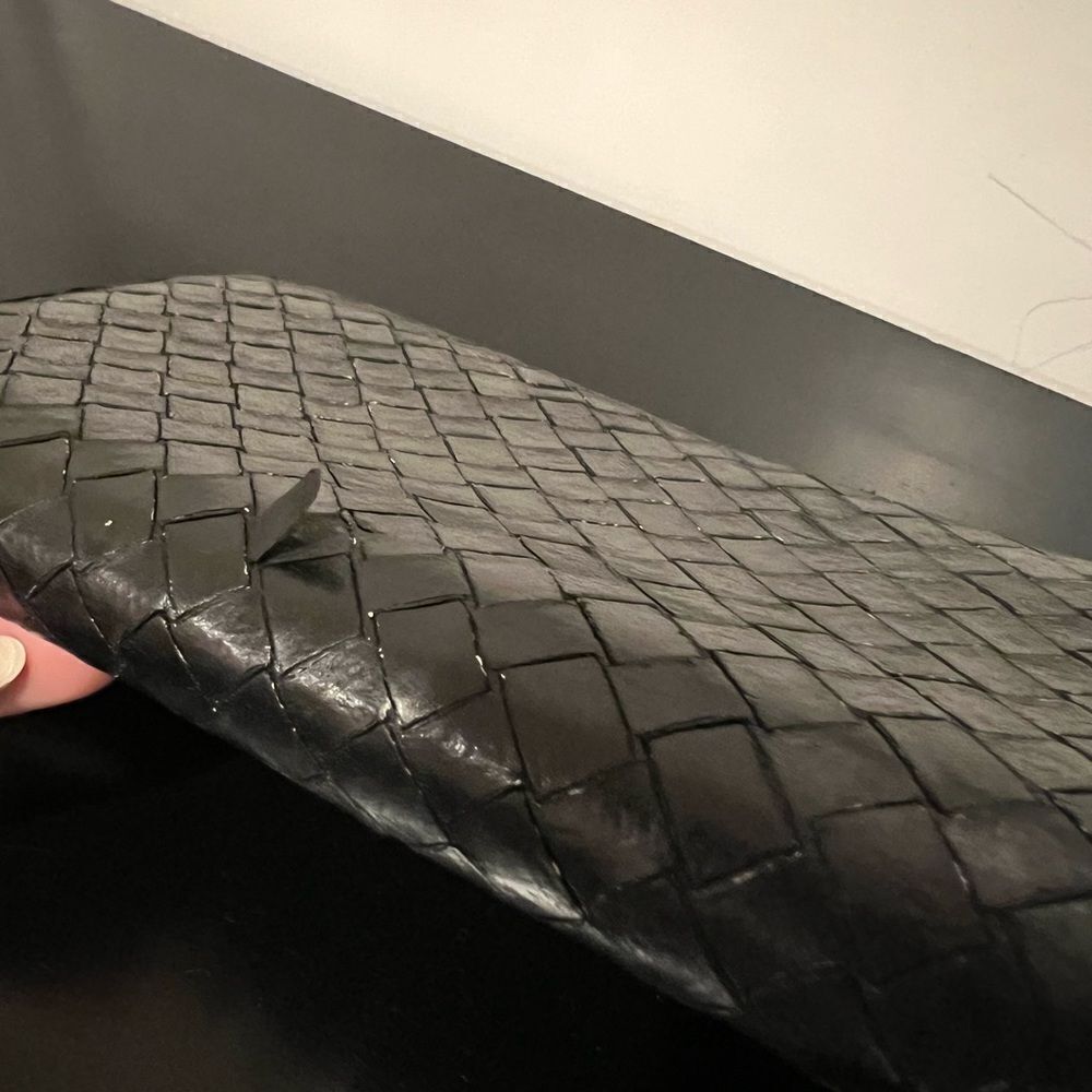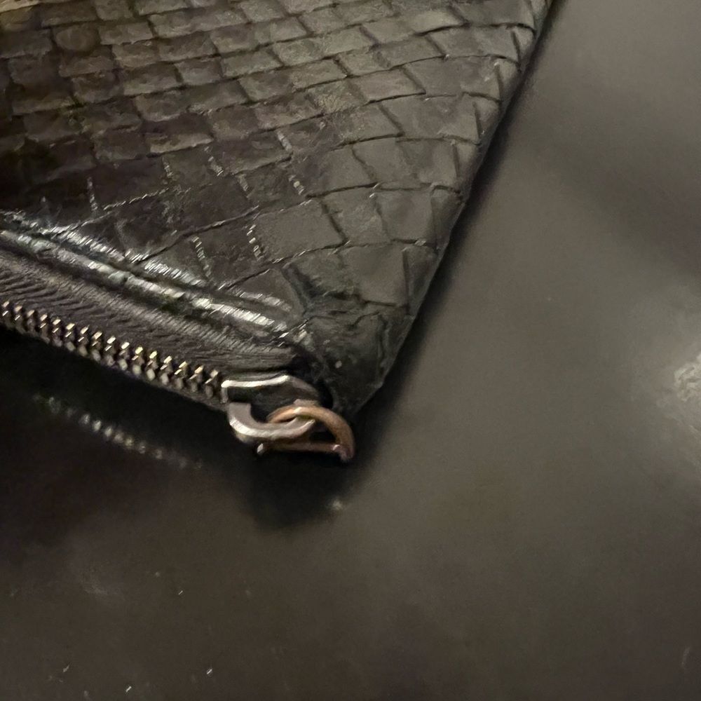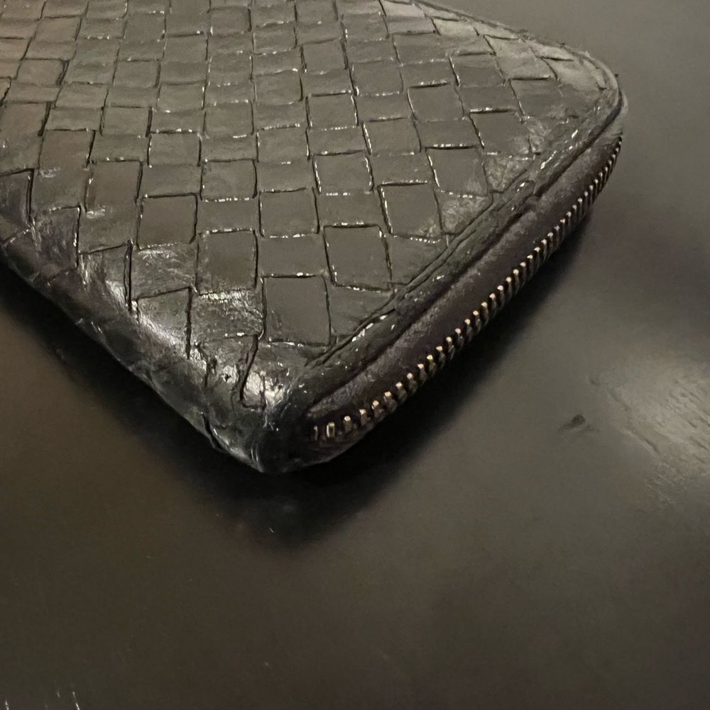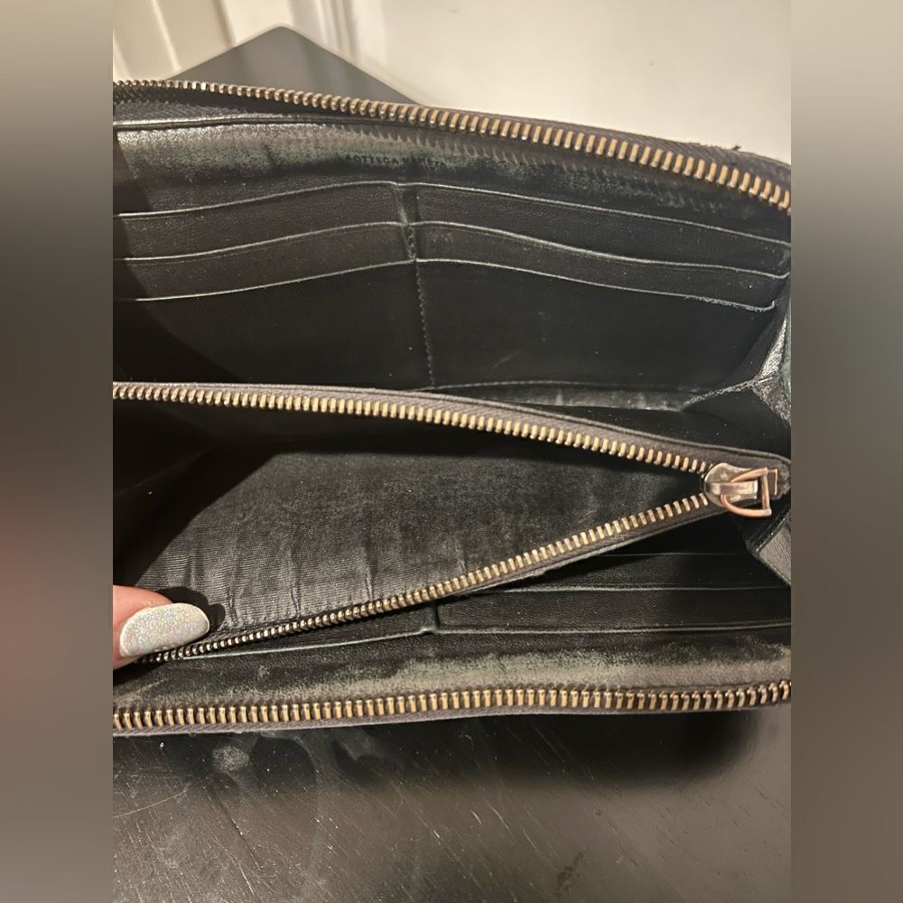 Black BOTTEGA VENETA zippy wallet in fair condition. Missing both zipper pulls. Zipper work well. One small leather square needs to be glued back down. That’s why I’m listing at a great deal! All easy fixes! Pet and smoke free environment.