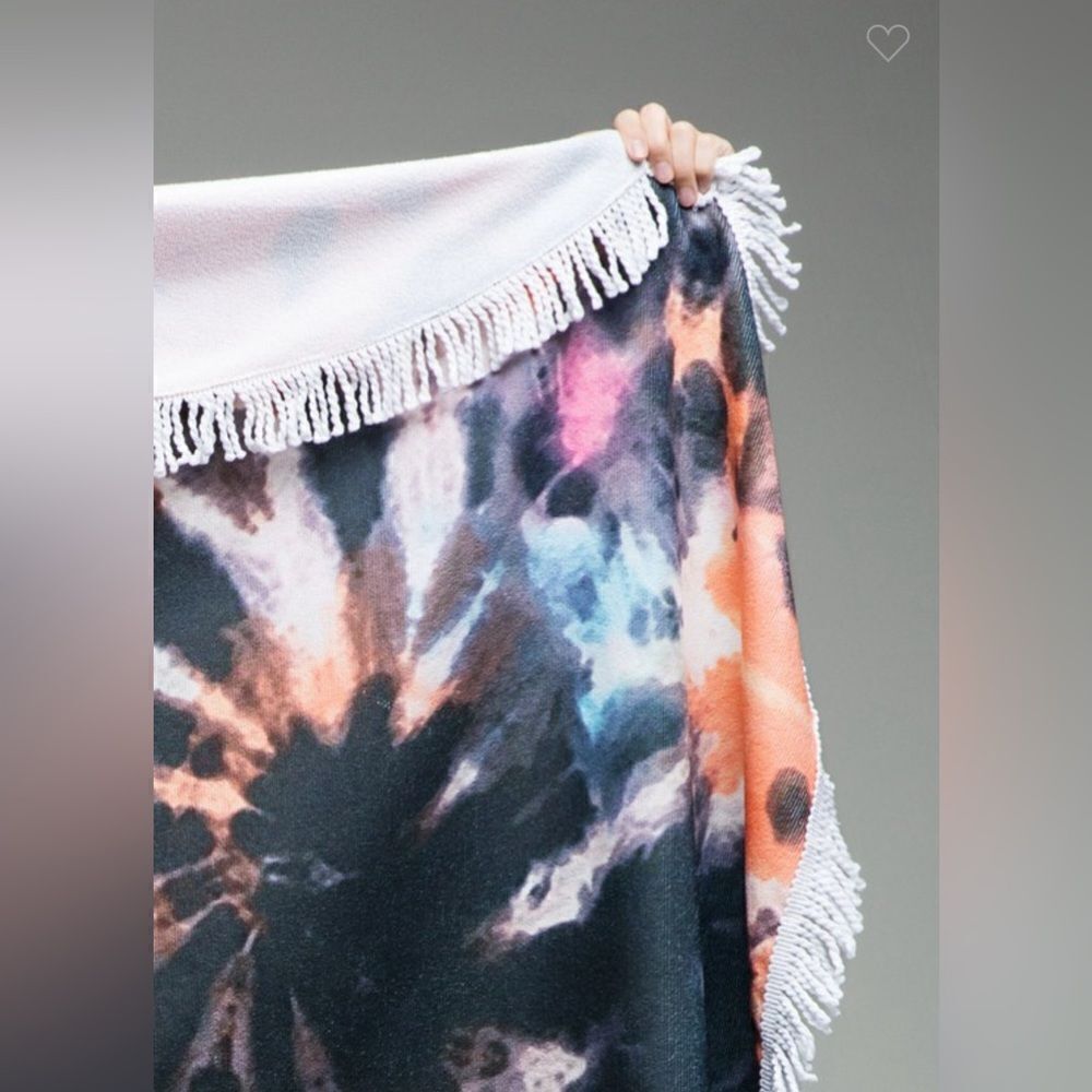 Round Tie-Dye towel with fringe. New boutique item. 58” diameter