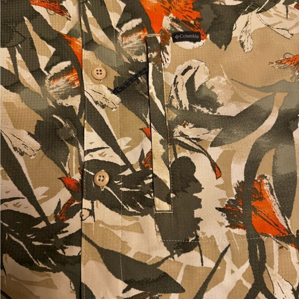 Columbia brand lightweight men’s button-down shirt. Extra large. Excellent condition. Has a zipper pocket in the front with air conditioning in the back with mesh. Provides 40+ sun protection.