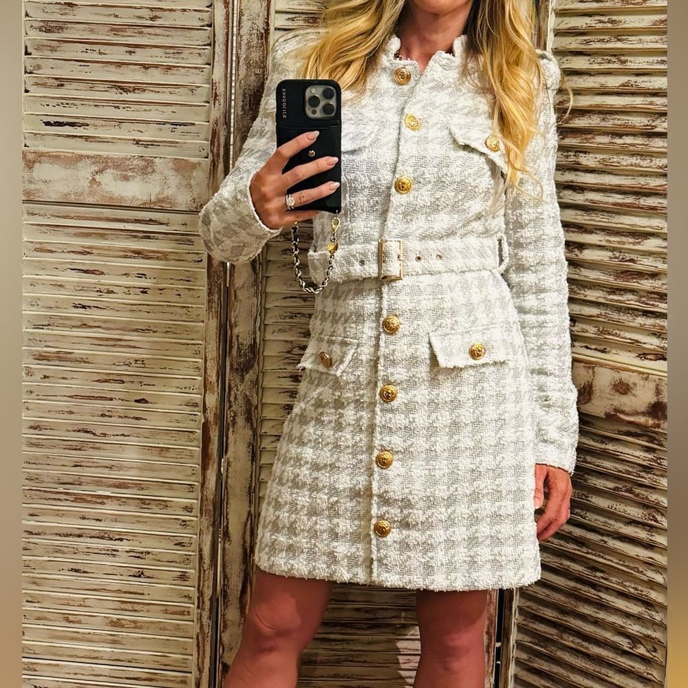 Elena White Silver Tweed Blazer Dress- New Arrival