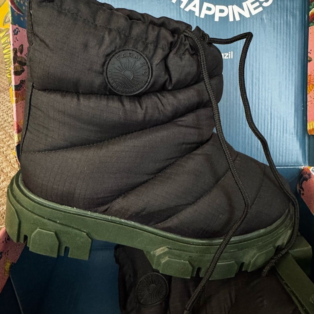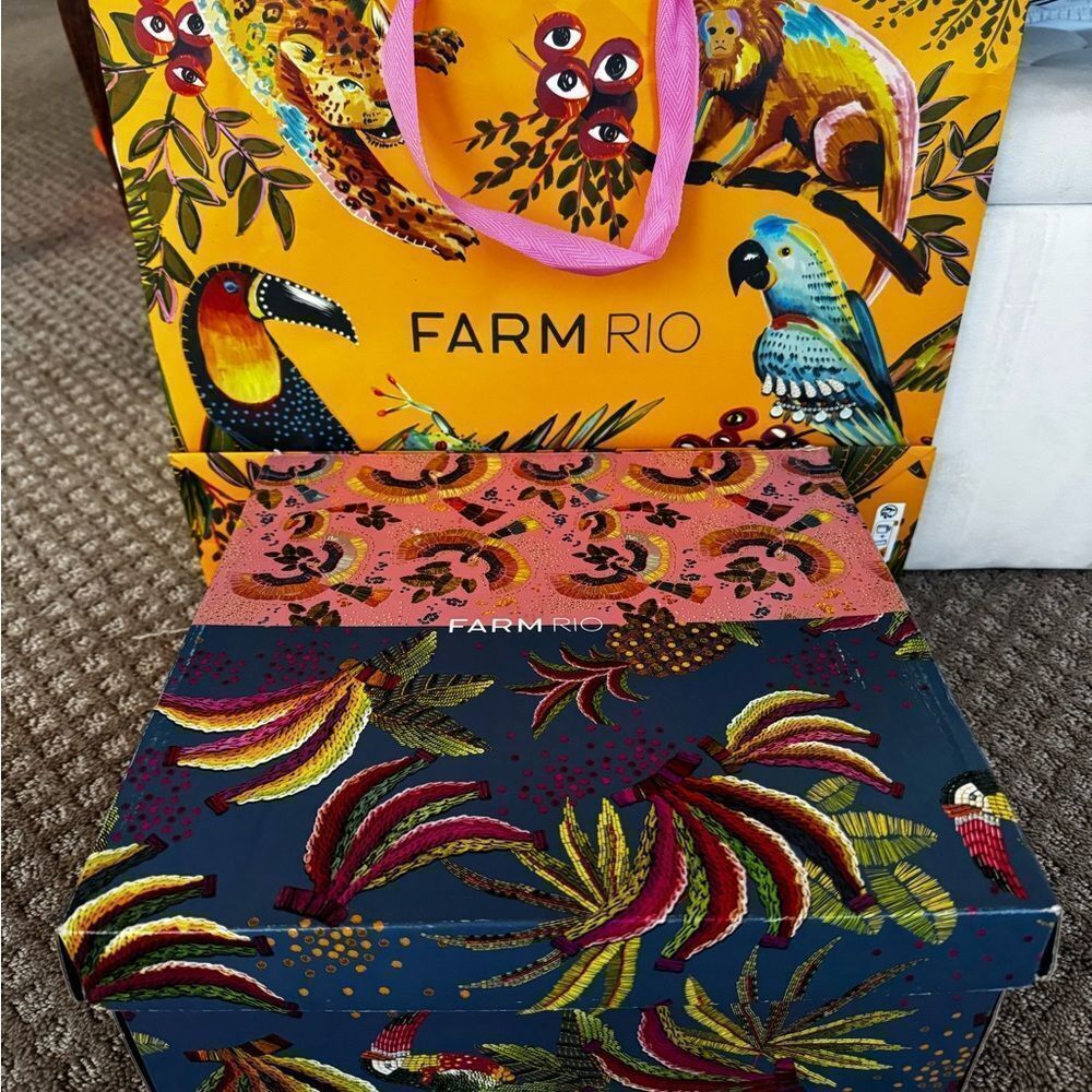 BRAND NEW FARM RIO BOOTS!!!! Bright and colorful box, shopping tote and dust cover included. Features tropical designs with birds and foliage. Perfect for gifting or personal use. Women’s size 7.