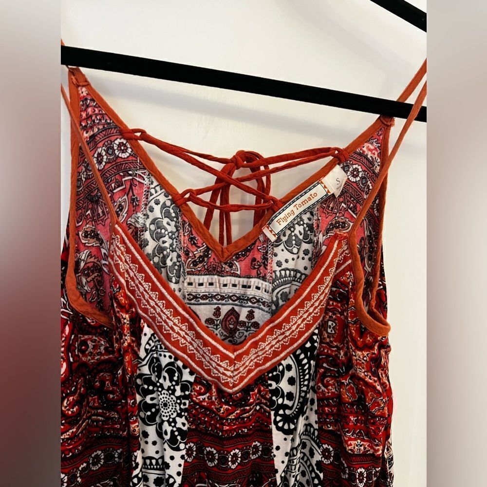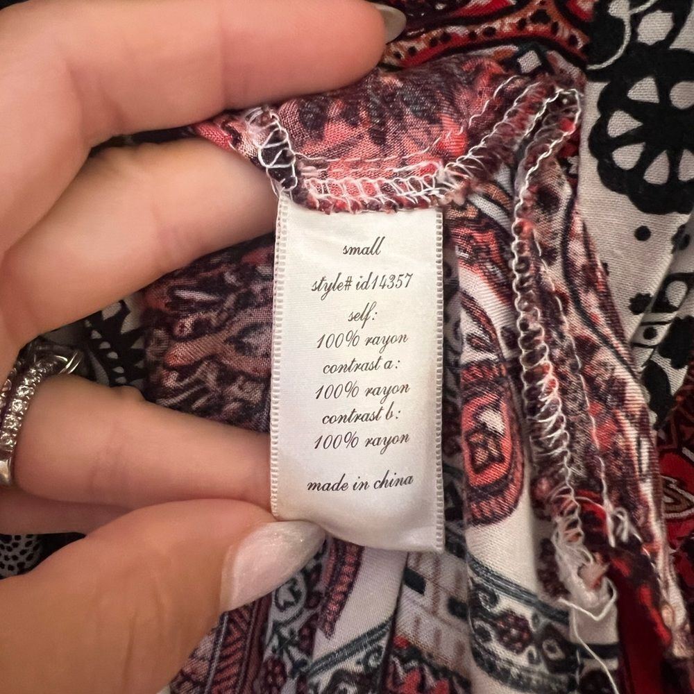 Excellent condition. Only worn once when I was pregnant. This can fit size small up to large because of the stretch and tie in the bust area. No odors. Pet and smoke free environment.