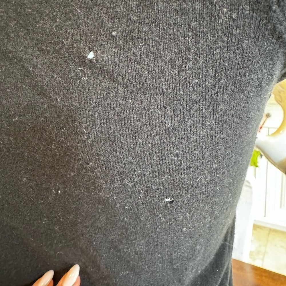 Super cute black sweater top with wide turtle neck. Length is 26” from top of shoulder to bottom. Can be used with leggings for long shirt/short dress look. Two pin holes found on the back. Price reduced for this.