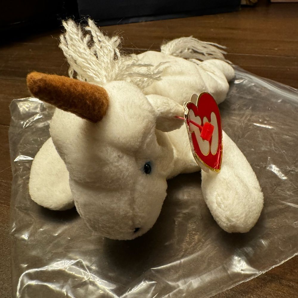 This is the fine mane, tan horn Mystic which is the rarest version. I believe the tag is third generation.