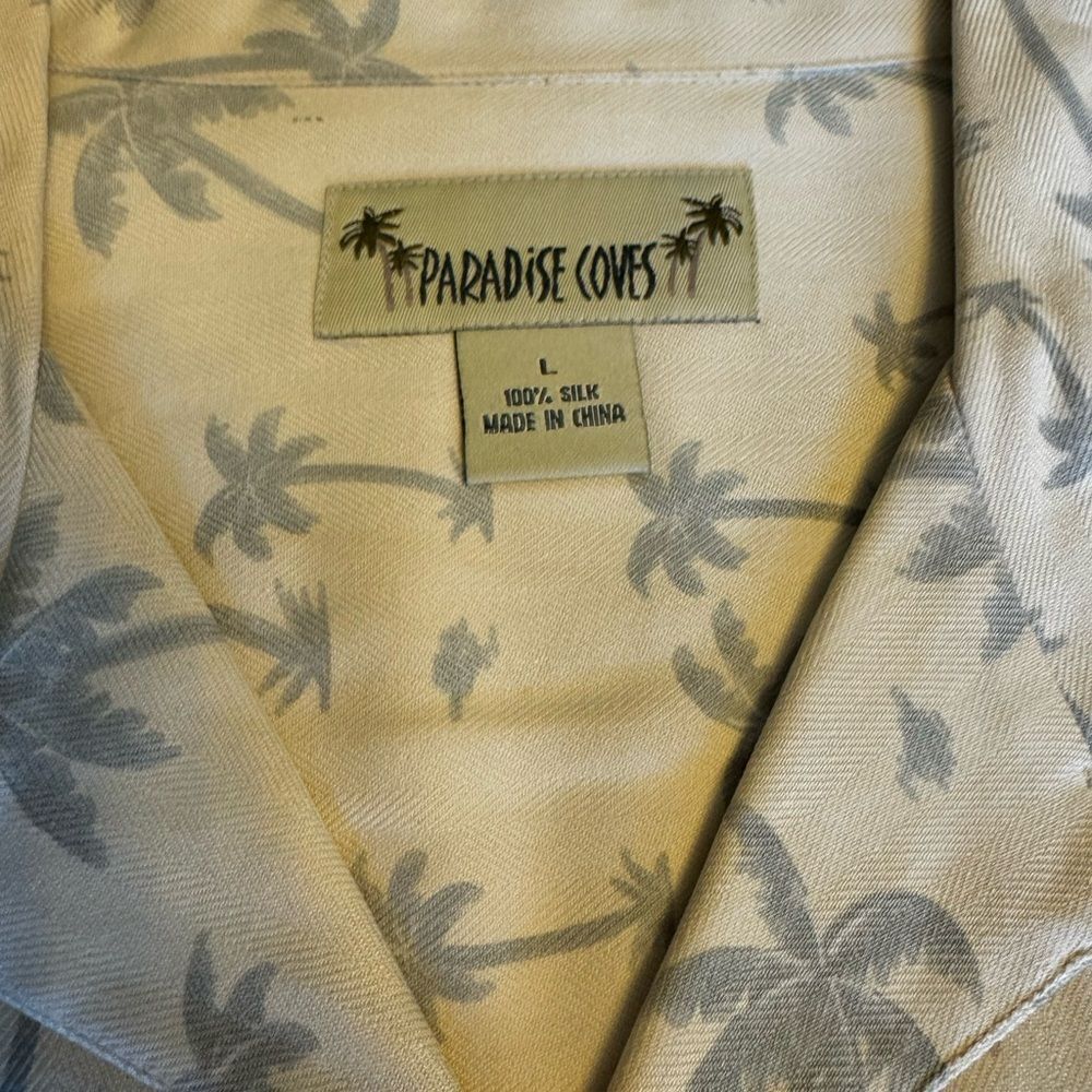 Stay stylish and comfortable with this Paradise Cove men's shirt. Featuring a white color with a palm tree print, this shirt is perfect for casual outings.