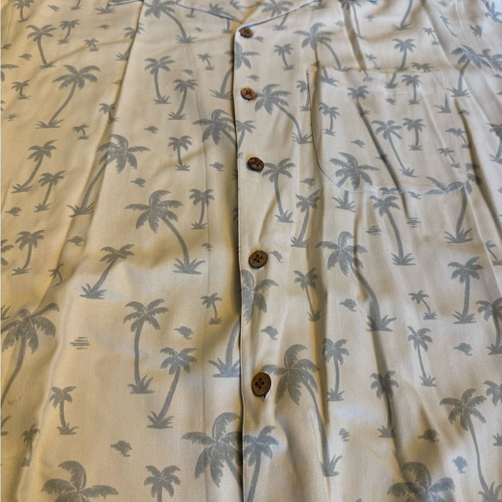 Stay stylish and comfortable with this Paradise Cove men's shirt. Featuring a white color with a palm tree print, this shirt is perfect for casual outings.