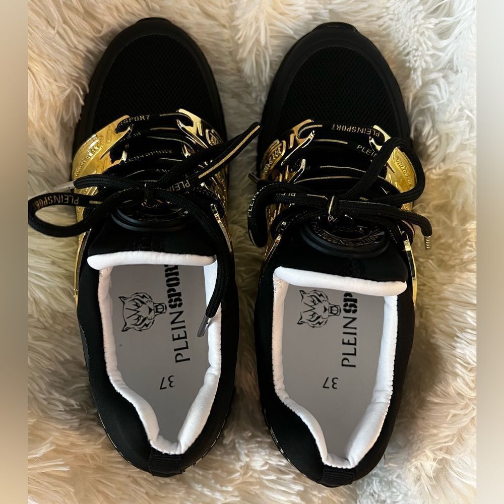 Brand New in box!!! Never been worn. Black and gold Plein Sport women’s sneakers in size 37. Perfect condition. Box is a little damaged as shown in pictures.
