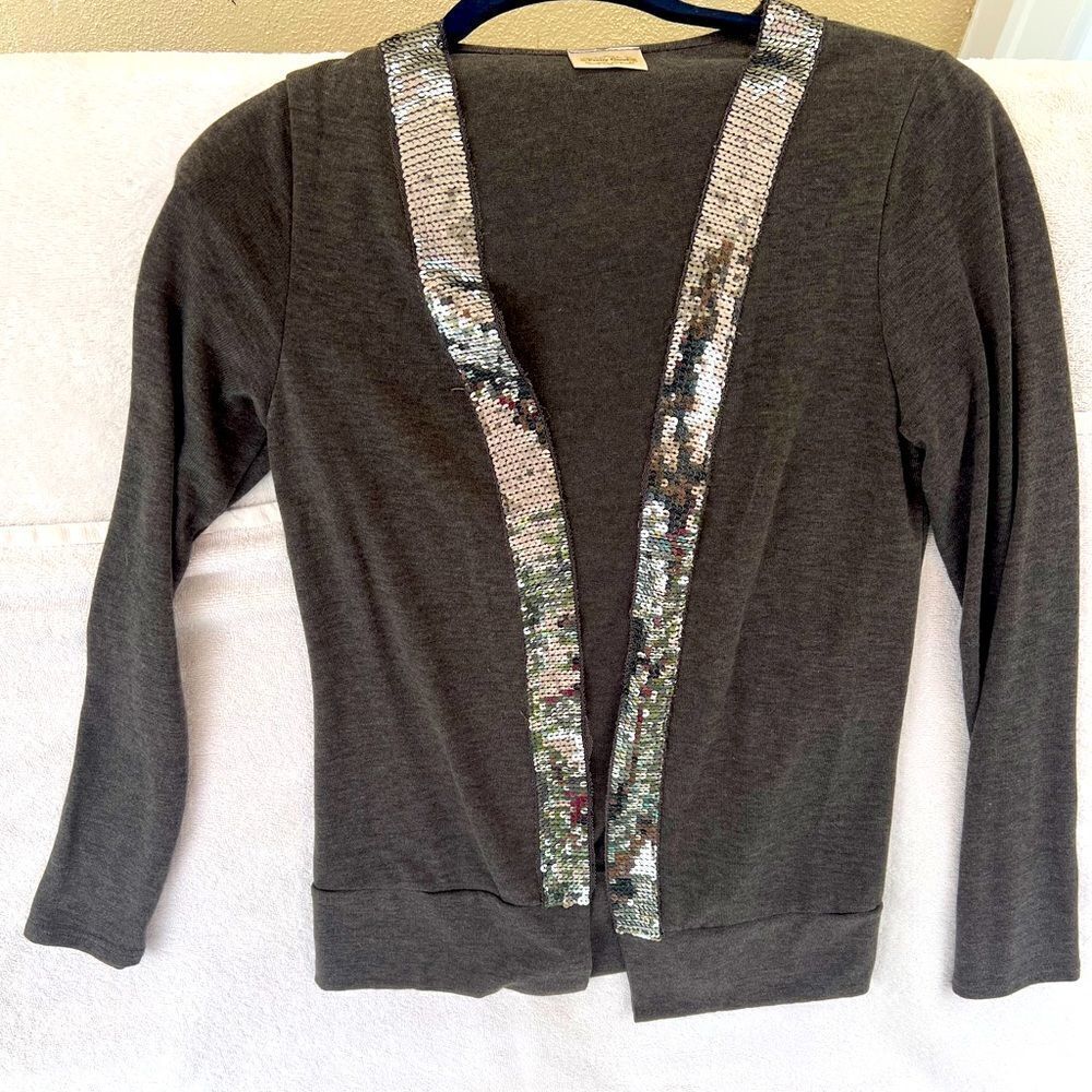 NWOT. Never worn or washed. Grey Cardigan with sequin opening. No flaws. Pet and smoke free home.