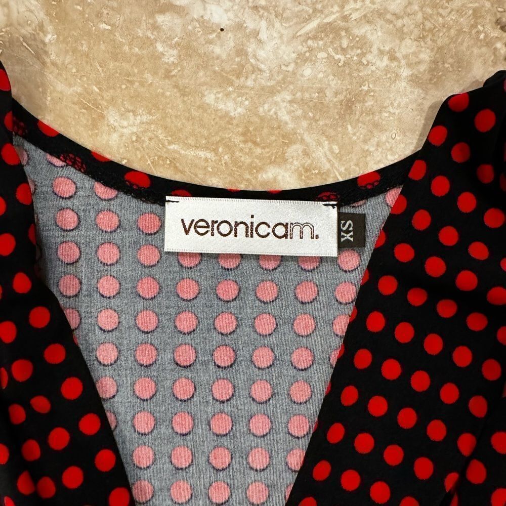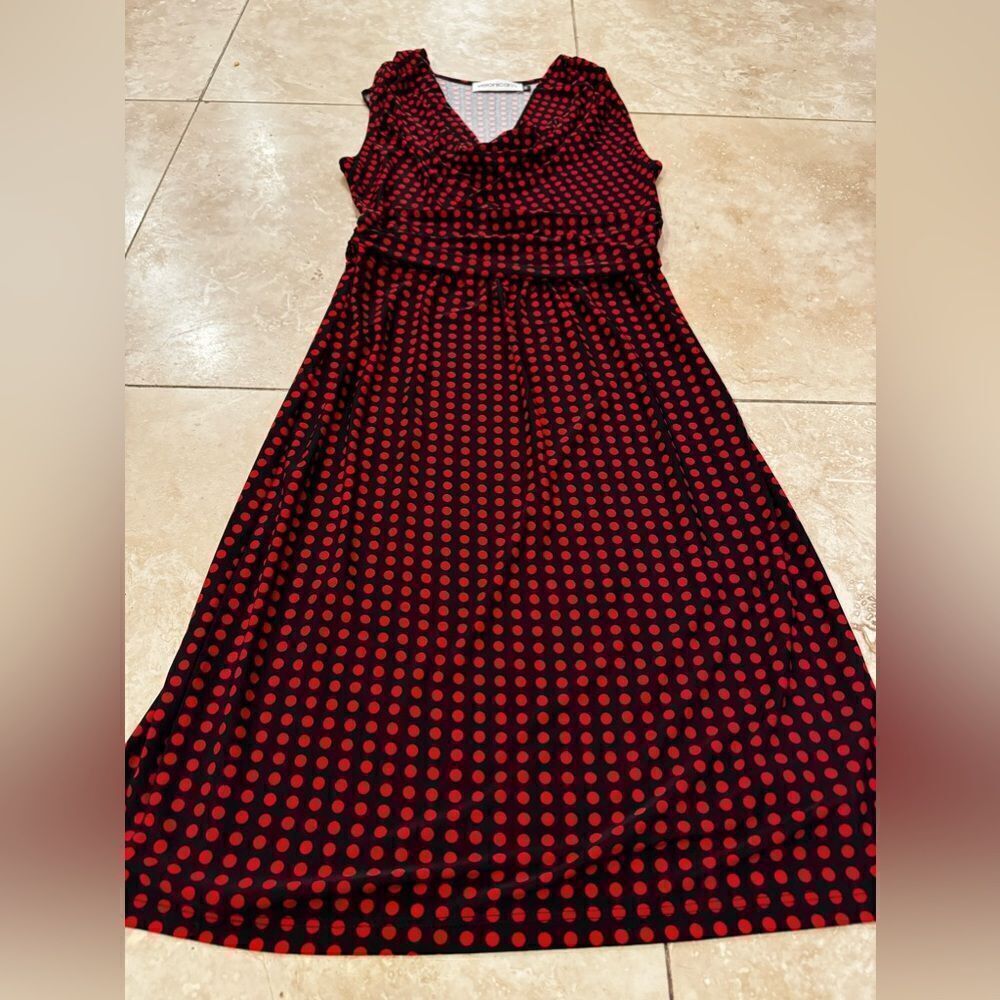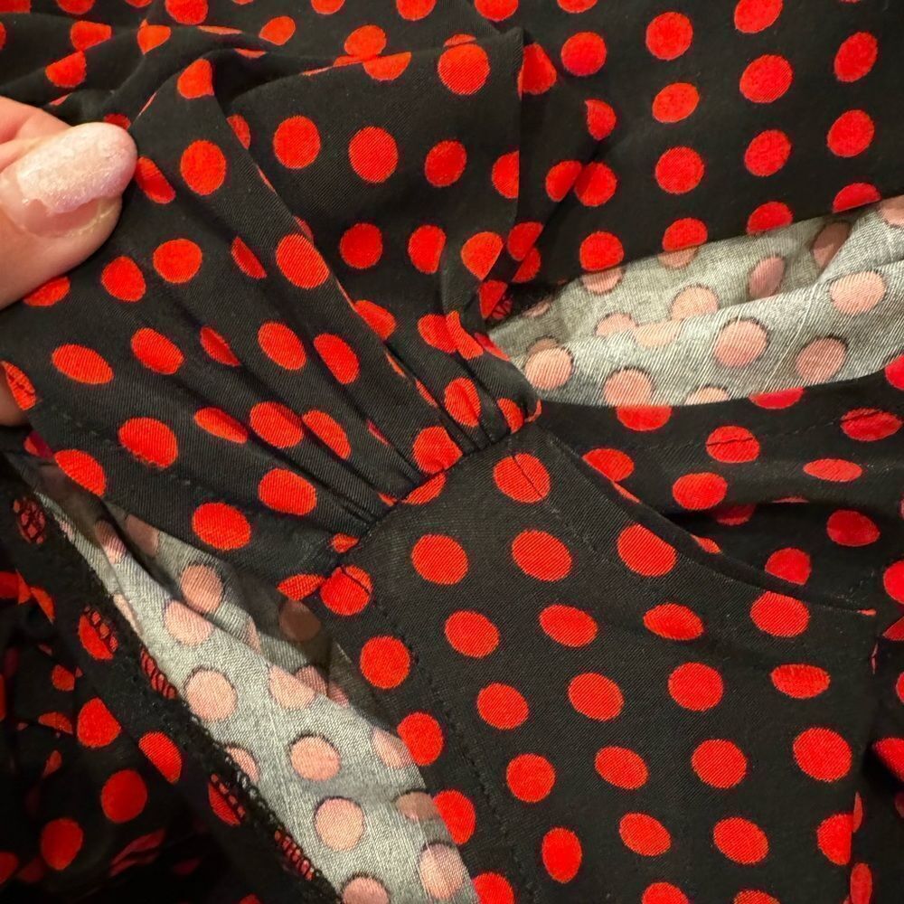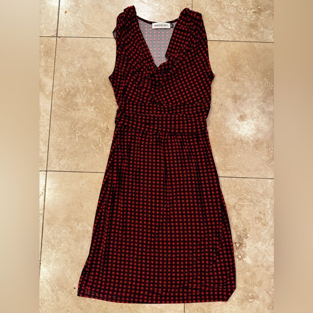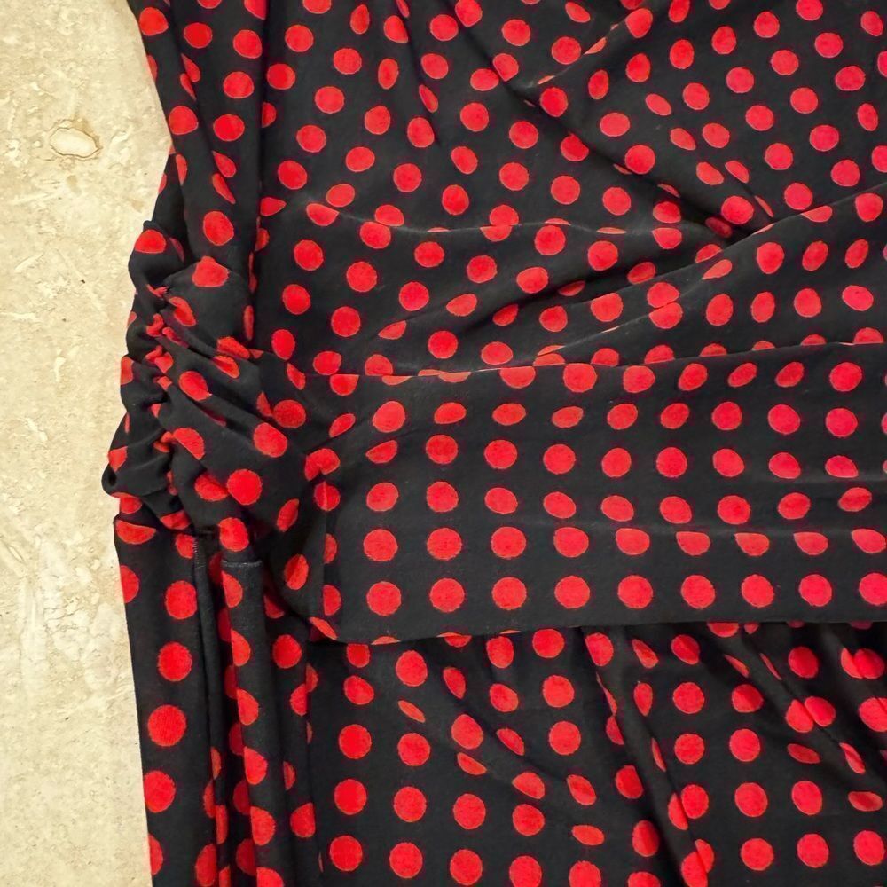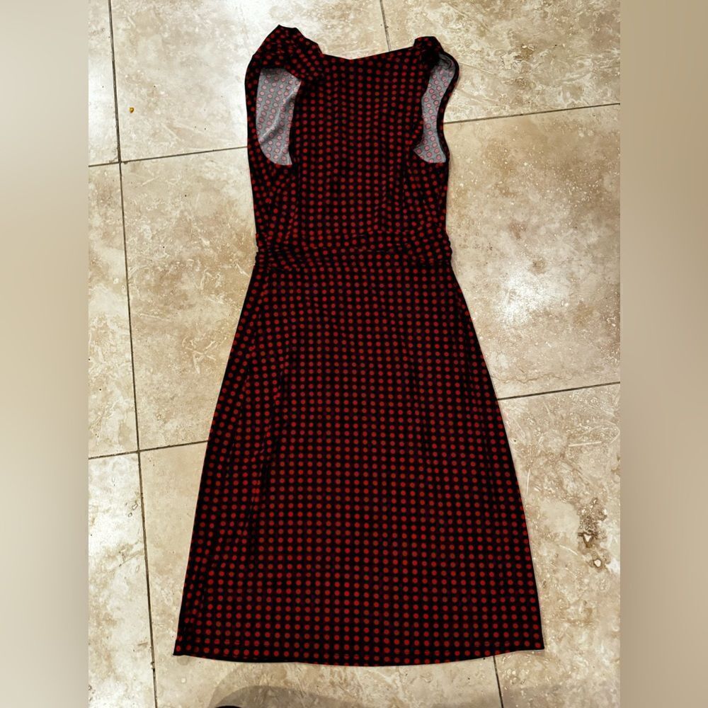 Excellent condition. Classy Midi polkadot dress with cinched built in waist band and top of shoulder detail. Drop neck in the front.